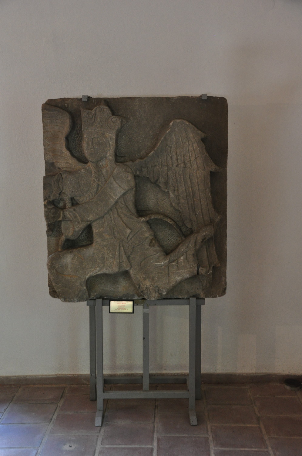 Source: Archnet interior, museum exhibit, running angel with wings and crown or hat in relief on two blocks of stone, July 2010