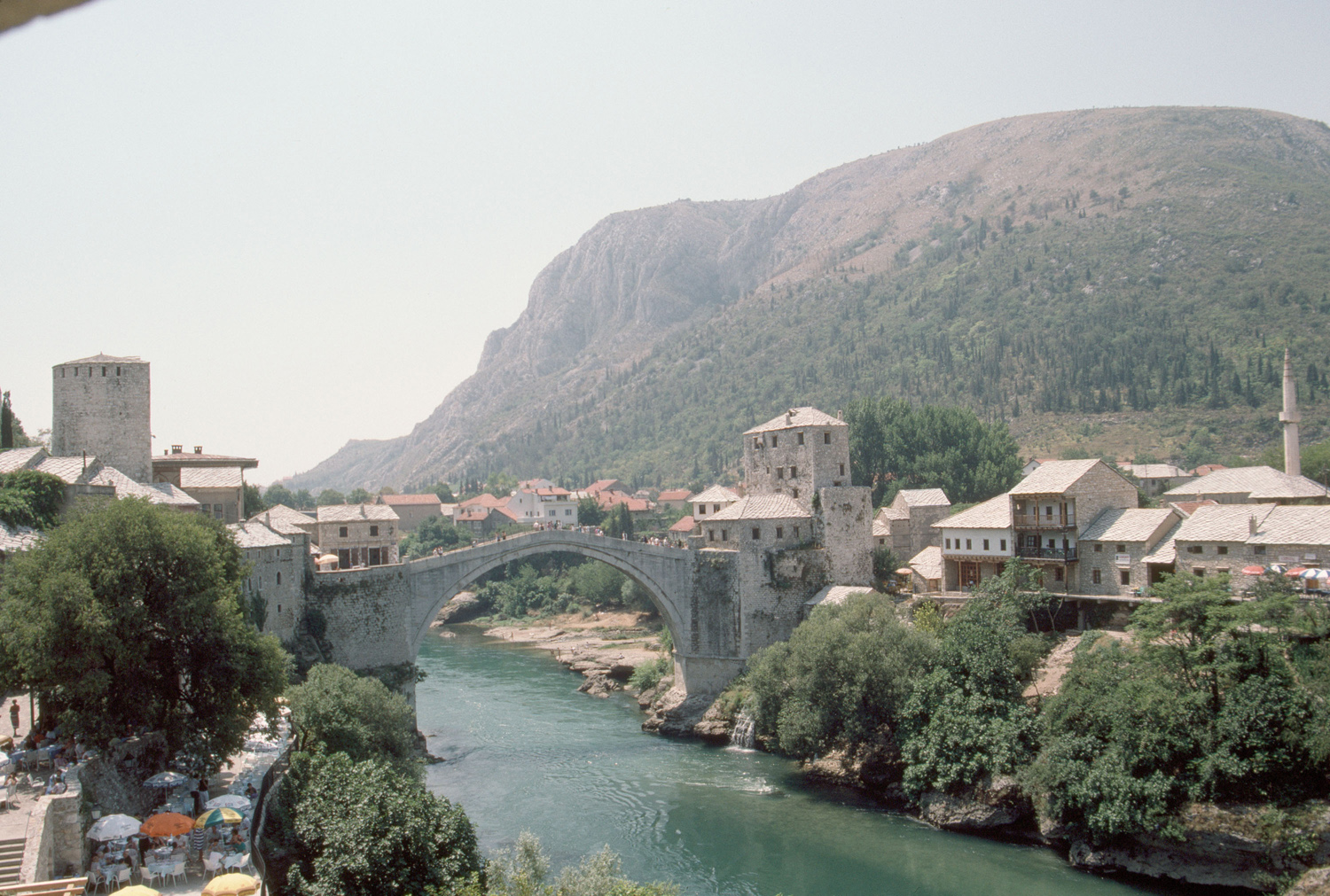 Arches, Stonework, Transportation, Buildings --War damage, Süleyman I, Sultan of the Turks, 1494 or 5-1566, Architecture, Islamic --Bosnia and Hercegovina, Architecture, Ottoman, Yugoslavia, Former Yugoslav republics, Bridges -- War damage, Neretva River (Bosnia and Hercegovina and Croatia)