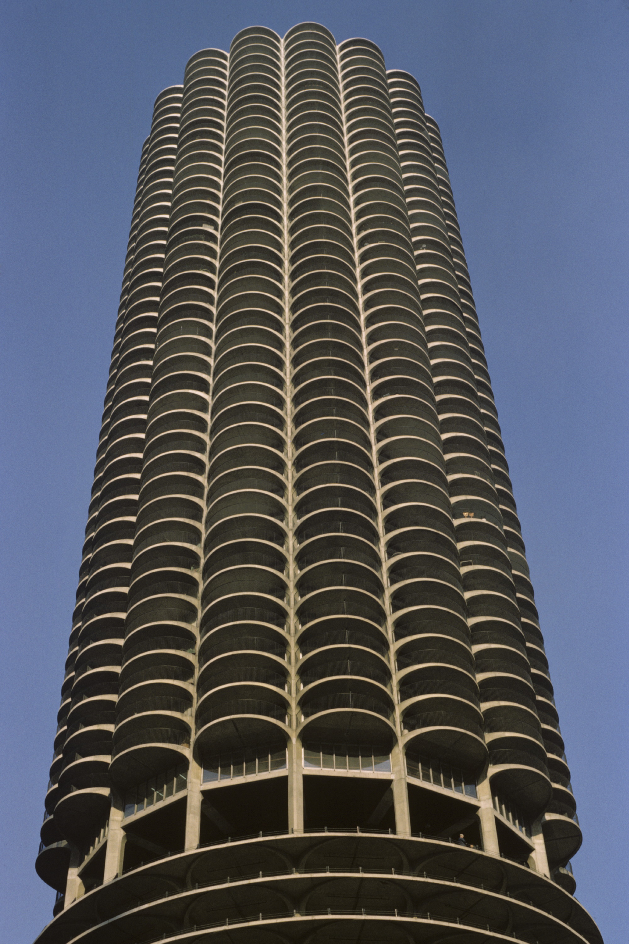 300 N. State Street, Chicago, IL 60610 exterior, apartments above a parking garage, 1963