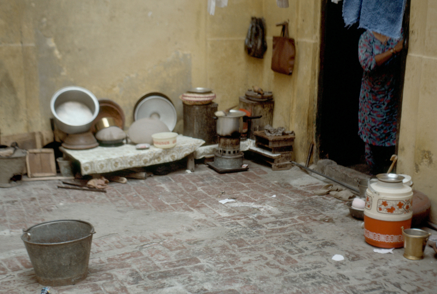 general view, residential courtyard in the Walled City, exterior kitchen, June 1990
