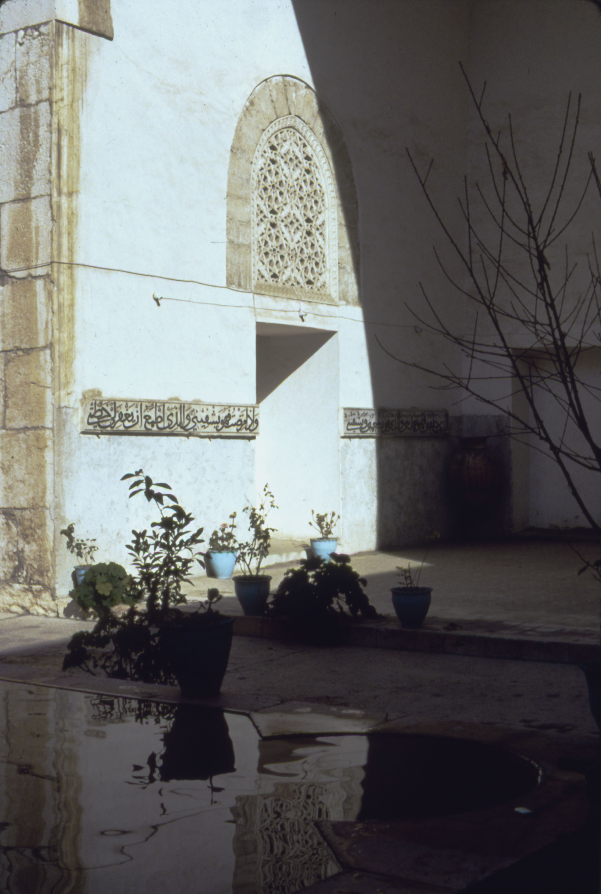 Hospitals, Seljuq, Medical colleges, Architecture, Islamic --Syria, Nur al-Din, Atabeg of Syria, 1118-1174, Shades and shadows, Courtyards, Plants, potted, Iwans