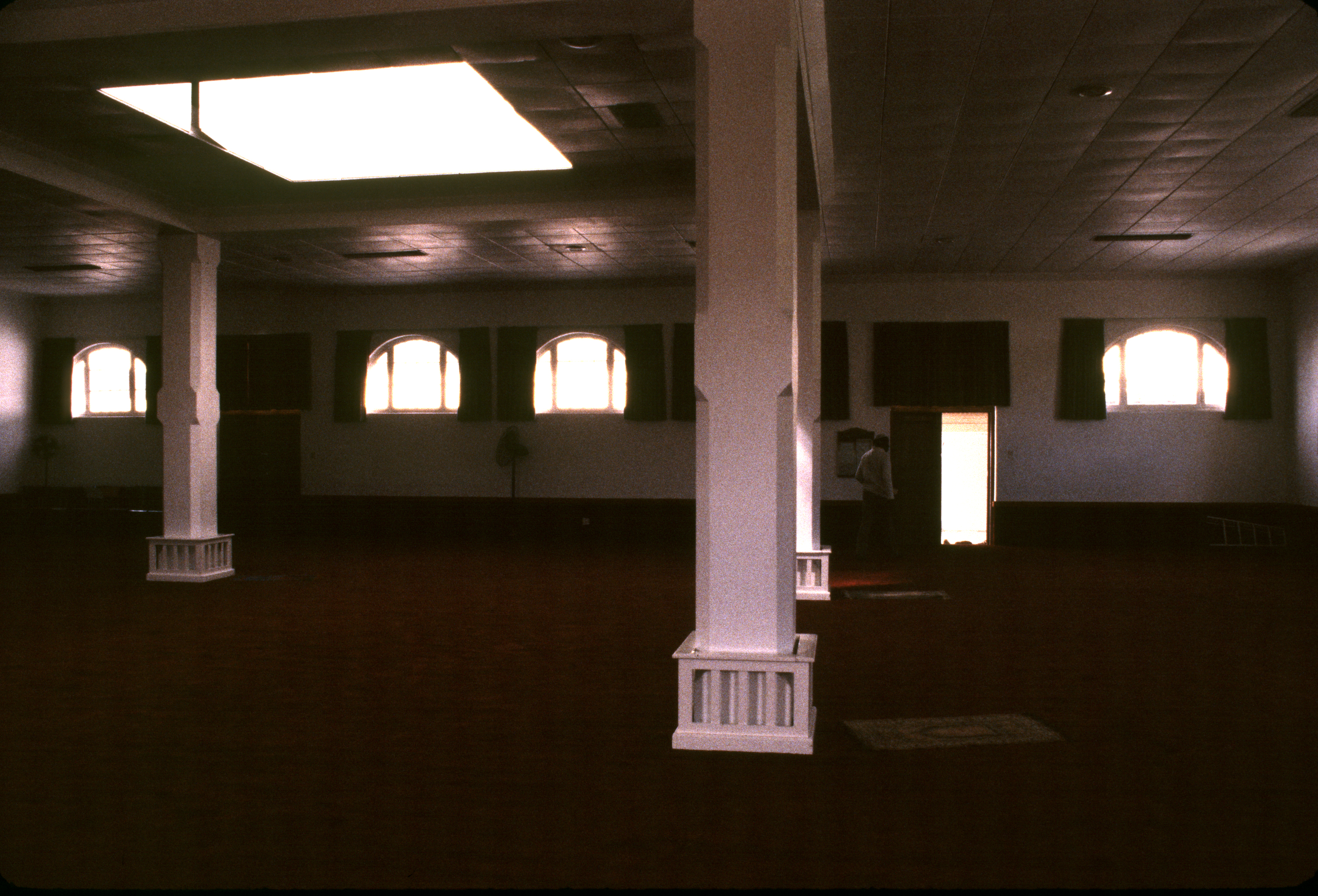 Corner of Worcester Road and Perth Road, Walmer Estate, Cape Town. interior, prayer hall, view to eastern wall, 1986
