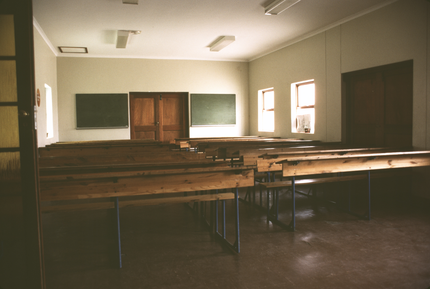 Spine Road, Rocklands, Mitchell's Plain, Cape Town. In an area developed in the 1970s as a coloured area, to provide housing to those removed from their homes by the Group Areas Act. Many families from District Six relocated here when their community was razed. interior, madrasa, 1986